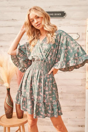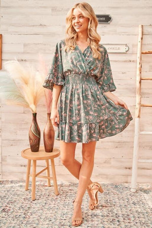 Calla Floral Mini Dress - Teal