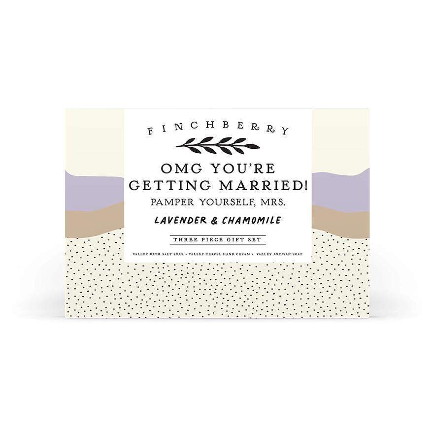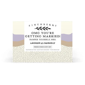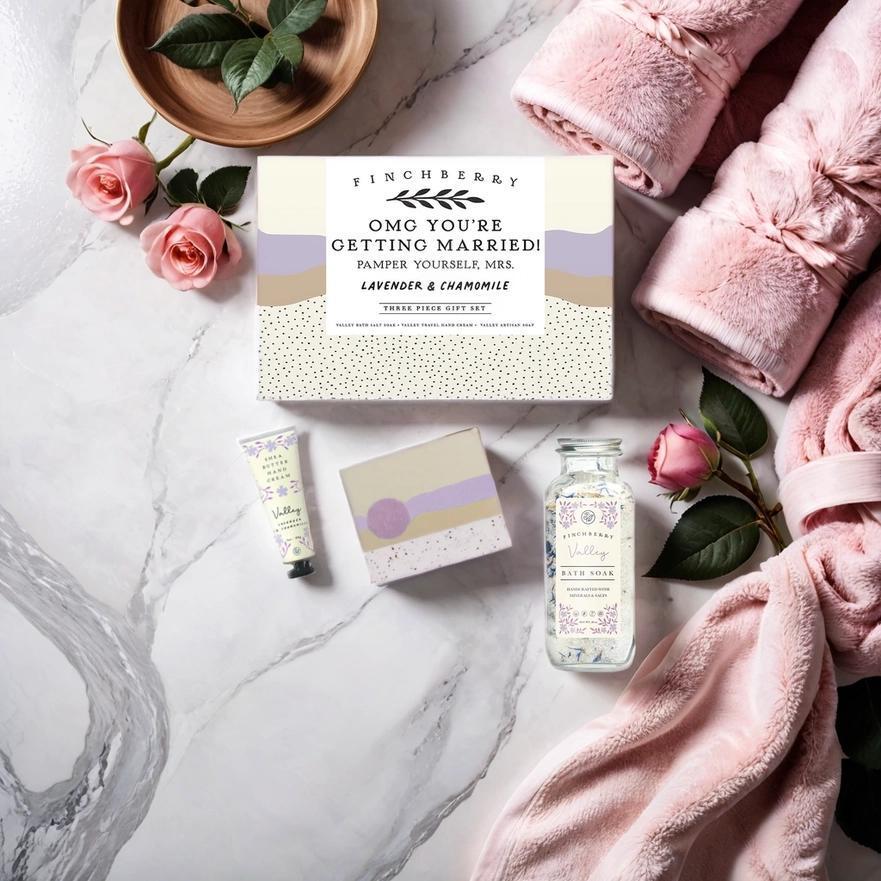 {"id":8907844092132,"title":"OMG You're Getting Married 3 Piece Wedding Gift Set","handle":"omg-youre-getting-married-3-piece-wedding-gift-set","description":"Celebrate the joyous occasion of an upcoming wedding with the OMG You're Getting Married 3 Piece Gift Set. This luxurious set is designed to pamper and delight, featuring a Valley Soap Bar, Valley Travel Hand Cream, and Valley Bath Soak. Infused with calming and romantic scents of lavender and chamomile, it's perfect for soothing pre-wedding jitters or unwinding after a busy day of planning. Each product is crafted with high-quality ingredients to nourish the skin and invigorate the senses. \u003cbr\u003e\u003cbr\u003eFeatures:\u003cbr\u003e - Includes Valley Soap Bar, Valley Travel Hand Cream, and Valley Bath Soak\u003cbr\u003e- Infused with lavender and chamomile scents\u003cbr\u003e - High-quality ingredients for skin nourishment\u003cbr\u003e - Perfect for pre-wedding relaxation - Ideal for gifting to brides-to-be People also searching for : wedding gift sets, bridal shower gifts, bath and body gift sets, wedding favors, spa gift sets\u003cbr\u003e\u003cbr\u003e\u003cstrong\u003eMade in United States\u003c\/strong\u003e","published_at":"2026-02-03T16:20:26-05:00","created_at":"2026-02-03T16:20:23-05:00","vendor":"Finchberry","type":"","tags":["Bar Soap","Bath Soak","Bridal Shower Gift","Brides-To-Be","Finchberry","Lavender and Chamomile","Made in USA","Spa Gift Set","Travel Hand Cream","Wedding Gift","Wedding Gift Set"],"price":3900,"price_min":3900,"price_max":3900,"available":true,"price_varies":false,"compare_at_price":null,"compare_at_price_min":0,"compare_at_price_max":0,"compare_at_price_varies":false,"variants":[{"id":47537770234084,"title":"Default Title","option1":"Default Title","option2":null,"option3":null,"sku":null,"requires_shipping":true,"taxable":true,"featured_image":null,"available":true,"name":"OMG You're Getting Married 3 Piece Wedding Gift Set","public_title":null,"options":["Default Title"],"price":3900,"weight":1814,"compare_at_price":null,"inventory_quantity":2,"inventory_management":"shopify","inventory_policy":"deny","barcode":"850026571349","requires_selling_plan":false,"selling_plan_allocations":[]}],"images":["\/\/www.spottedmoon.com\/cdn\/shop\/files\/9a8e2d3c-5fb2-4a9d-9338-57d821d9a531.webp?v=1770951791","\/\/www.spottedmoon.com\/cdn\/shop\/files\/46ba4974-498b-46d7-8407-ec92f52e8486.webp?v=1770951791","\/\/www.spottedmoon.com\/cdn\/shop\/files\/900276b7-cc5d-4f6c-8c65-f9810968c189.webp?v=1770951791","\/\/www.spottedmoon.com\/cdn\/shop\/files\/e764e5d1-d36f-49e3-adcb-7893ce6acadc.webp?v=1770951791","\/\/www.spottedmoon.com\/cdn\/shop\/files\/0e5b5de0-7031-4158-8082-e06ce40b0f62.webp?v=1770951791","\/\/www.spottedmoon.com\/cdn\/shop\/files\/3c95173c-517b-4d32-b60c-3208fb211374.webp?v=1770951791","\/\/www.spottedmoon.com\/cdn\/shop\/files\/aa5af235-22df-4d25-a95e-ba5d36968de5.webp?v=1770951791"],"featured_image":"\/\/www.spottedmoon.com\/cdn\/shop\/files\/9a8e2d3c-5fb2-4a9d-9338-57d821d9a531.webp?v=1770951791","options":["Title"],"media":[{"alt":null,"id":68564168868068,"position":1,"preview_image":{"aspect_ratio":1.0,"height":881,"width":881,"src":"\/\/www.spottedmoon.com\/cdn\/shop\/files\/9a8e2d3c-5fb2-4a9d-9338-57d821d9a531.webp?v=1770951791"},"aspect_ratio":1.0,"height":881,"media_type":"image","src":"\/\/www.spottedmoon.com\/cdn\/shop\/files\/9a8e2d3c-5fb2-4a9d-9338-57d821d9a531.webp?v=1770951791","width":881},{"alt":null,"id":68564169490660,"position":2,"preview_image":{"aspect_ratio":1.0,"height":881,"width":881,"src":"\/\/www.spottedmoon.com\/cdn\/shop\/files\/46ba4974-498b-46d7-8407-ec92f52e8486.webp?v=1770951791"},"aspect_ratio":1.0,"height":881,"media_type":"image","src":"\/\/www.spottedmoon.com\/cdn\/shop\/files\/46ba4974-498b-46d7-8407-ec92f52e8486.webp?v=1770951791","width":881},{"alt":null,"id":68564169523428,"position":3,"preview_image":{"aspect_ratio":1.0,"height":881,"width":881,"src":"\/\/www.spottedmoon.com\/cdn\/shop\/files\/900276b7-cc5d-4f6c-8c65-f9810968c189.webp?v=1770951791"},"aspect_ratio":1.0,"height":881,"media_type":"image","src":"\/\/www.spottedmoon.com\/cdn\/shop\/files\/900276b7-cc5d-4f6c-8c65-f9810968c189.webp?v=1770951791","width":881},{"alt":null,"id":68564169556196,"position":4,"preview_image":{"aspect_ratio":1.0,"height":881,"width":881,"src":"\/\/www.spottedmoon.com\/cdn\/shop\/files\/e764e5d1-d36f-49e3-adcb-7893ce6acadc.webp?v=1770951791"},"aspect_ratio":1.0,"height":881,"media_type":"image","src":"\/\/www.spottedmoon.com\/cdn\/shop\/files\/e764e5d1-d36f-49e3-adcb-7893ce6acadc.webp?v=1770951791","width":881},{"alt":null,"id":68564169588964,"position":5,"preview_image":{"aspect_ratio":1.0,"height":881,"width":881,"src":"\/\/www.spottedmoon.com\/cdn\/shop\/files\/0e5b5de0-7031-4158-8082-e06ce40b0f62.webp?v=1770951791"},"aspect_ratio":1.0,"height":881,"media_type":"image","src":"\/\/www.spottedmoon.com\/cdn\/shop\/files\/0e5b5de0-7031-4158-8082-e06ce40b0f62.webp?v=1770951791","width":881},{"alt":null,"id":68564169654500,"position":6,"preview_image":{"aspect_ratio":1.0,"height":881,"width":881,"src":"\/\/www.spottedmoon.com\/cdn\/shop\/files\/3c95173c-517b-4d32-b60c-3208fb211374.webp?v=1770951791"},"aspect_ratio":1.0,"height":881,"media_type":"image","src":"\/\/www.spottedmoon.com\/cdn\/shop\/files\/3c95173c-517b-4d32-b60c-3208fb211374.webp?v=1770951791","width":881},{"alt":null,"id":68564169687268,"position":7,"preview_image":{"aspect_ratio":1.0,"height":881,"width":881,"src":"\/\/www.spottedmoon.com\/cdn\/shop\/files\/aa5af235-22df-4d25-a95e-ba5d36968de5.webp?v=1770951791"},"aspect_ratio":1.0,"height":881,"media_type":"image","src":"\/\/www.spottedmoon.com\/cdn\/shop\/files\/aa5af235-22df-4d25-a95e-ba5d36968de5.webp?v=1770951791","width":881}],"requires_selling_plan":false,"selling_plan_groups":[],"content":"Celebrate the joyous occasion of an upcoming wedding with the OMG You're Getting Married 3 Piece Gift Set. This luxurious set is designed to pamper and d