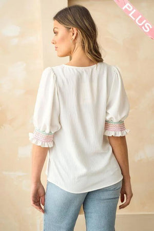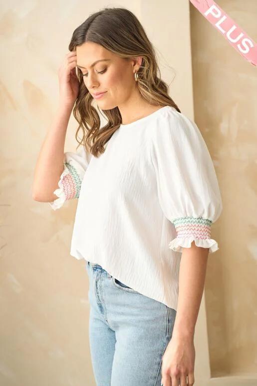 {"id":8286655643876,"title":"Gelina Blouse - Off White","handle":"gelina-blouse-off-white","description":"Smocked sleeve\u003cbr\u003e\u003cbr\u003ePolyester - 100%","published_at":"2024-04-24T22:13:40-04:00","created_at":"2024-04-19T21:03:36-04:00","vendor":"Hailey \u0026 Co.","type":"Shirts \u0026 Tops","tags":["100% Polyester","Hailey \u0026 Co.","Made in USA"],"price":3320,"price_min":3320,"price_max":3320,"available":true,"price_varies":false,"compare_at_price":null,"compare_at_price_min":0,"compare_at_price_max":0,"compare_at_price_varies":false,"variants":[{"id":44979978076388,"title":"XLarage","option1":"XLarage","option2":null,"option3":null,"sku":"PST10383-OW-XL","requires_shipping":true,"taxable":true,"featured_image":null,"available":true,"name":"Gelina Blouse - Off White - XLarage","public_title":"XLarage","options":["XLarage"],"price":3320,"weight":397,"compare_at_price":null,"inventory_quantity":2,"inventory_management":"shopify","inventory_policy":"deny","barcode":"600202386966","requires_selling_plan":false,"selling_plan_allocations":[]},{"id":44979978109156,"title":"2XLarge","option1":"2XLarge","option2":null,"option3":null,"sku":"PST10383-OW-2XL","requires_shipping":true,"taxable":true,"featured_image":null,"available":true,"name":"Gelina Blouse - Off White - 2XLarge","public_title":"2XLarge","options":["2XLarge"],"price":3320,"weight":397,"compare_at_price":null,"inventory_quantity":1,"inventory_management":"shopify","inventory_policy":"deny","barcode":"600202386942","requires_selling_plan":false,"selling_plan_allocations":[]},{"id":44979978141924,"title":"3XLarge","option1":"3XLarge","option2":null,"option3":null,"sku":"PST10383-OW-3XL","requires_shipping":true,"taxable":true,"featured_image":null,"available":false,"name":"Gelina Blouse - Off White - 3XLarge","public_title":"3XLarge","options":["3XLarge"],"price":3320,"weight":397,"compare_at_price":null,"inventory_quantity":0,"inventory_management":"shopify","inventory_policy":"deny","barcode":"600202386959","requires_selling_plan":false,"selling_plan_allocations":[]}],"images":["\/\/www.spottedmoon.com\/cdn\/shop\/files\/9b77ed04a339cc8635a917f63b95db84.jpg?v=1713575020","\/\/www.spottedmoon.com\/cdn\/shop\/files\/beae1bbab718241a9e750a87ebc7631c.jpg?v=1713575021","\/\/www.spottedmoon.com\/cdn\/shop\/files\/42f116ba1875b286481d06772a3e088e.jpg?v=1713575022","\/\/www.spottedmoon.com\/cdn\/shop\/files\/87e9629eca873638702216300c8d2998.jpg?v=1713575024","\/\/www.spottedmoon.com\/cdn\/shop\/files\/2d2cbc0154e48b5069c23c197f8a9f7a.jpg?v=1713575026","\/\/www.spottedmoon.com\/cdn\/shop\/files\/52e006e71b03fcfc252f0db8326f9a0e.jpg?v=1713575027"],"featured_image":"\/\/www.spottedmoon.com\/cdn\/shop\/files\/9b77ed04a339cc8635a917f63b95db84.jpg?v=1713575020","options":["Variant"],"media":[{"alt":null,"id":59699067945188,"position":1,"preview_image":{"aspect_ratio":0.666,"height":773,"width":515,"src":"\/\/www.spottedmoon.com\/cdn\/shop\/files\/9b77ed04a339cc8635a917f63b95db84.jpg?v=1713575020"},"aspect_ratio":0.666,"height":773,"media_type":"image","src":"\/\/www.spottedmoon.com\/cdn\/shop\/files\/9b77ed04a339cc8635a917f63b95db84.jpg?v=1713575020","width":515},{"alt":null,"id":59699067977956,"position":2,"preview_image":{"aspect_ratio":0.666,"height":773,"width":515,"src":"\/\/www.spottedmoon.com\/cdn\/shop\/files\/beae1bbab718241a9e750a87ebc7631c.jpg?v=1713575021"},"aspect_ratio":0.666,"height":773,"media_type":"image","src":"\/\/www.spottedmoon.com\/cdn\/shop\/files\/beae1bbab718241a9e750a87ebc7631c.jpg?v=1713575021","width":515},{"alt":null,"id":59699068010724,"position":3,"preview_image":{"aspect_ratio":0.666,"height":773,"width":515,"src":"\/\/www.spottedmoon.com\/cdn\/shop\/files\/42f116ba1875b286481d06772a3e088e.jpg?v=1713575022"},"aspect_ratio":0.666,"height":773,"media_type":"image","src":"\/\/www.spottedmoon.com\/cdn\/shop\/files\/42f116ba1875b286481d06772a3e088e.jpg?v=1713575022","width":515},{"alt":null,"id":59699068043492,"position":4,"preview_image":{"aspect_ratio":0.666,"height":773,"width":515,"src":"\/\/www.spottedmoon.com\/cdn\/shop\/files\/87e9629eca873638702216300c8d2998.jpg?v=1713575024"},"aspect_ratio":0.666,"height":773,"media_type":"image","src":"\/\/www.spottedmoon.com\/cdn\/shop\/files\/87e9629eca873638702216300c8d2998.jpg?v=1713575024","width":515},{"alt":null,"id":59699068141796,"position":5,"preview_image":{"aspect_ratio":0.666,"height":773,"width":515,"src":"\/\/www.spottedmoon.com\/cdn\/shop\/files\/2d2cbc0154e48b5069c23c197f8a9f7a.jpg?v=1713575026"},"aspect_ratio":0.666,"height":773,"media_type":"image","src":"\/\/www.spottedmoon.com\/cdn\/shop\/files\/2d2cbc0154e48b5069c23c197f8a9f7a.jpg?v=1713575026","width":515},{"alt":null,"id":59699068174564,"position":6,"preview_image":{"aspect_ratio":0.666,"height":773,"width":515,"src":"\/\/www.spottedmoon.com\/cdn\/shop\/files\/52e006e71b03fcfc252f0db8326f9a0e.jpg?v=1713575027"},"aspect_ratio":0.666,"height":773,"media_type":"image","src":"\/\/www.spottedmoon.com\/cdn\/shop\/files\/52e006e71b03fcfc252f0db8326f9a0e.jpg?v=1713575027","width":515}],"requires_selling_plan":false,"selling_plan_groups":[],"content":"Smocked sleeve\u003cbr\u003e\u003cbr\u003ePolyester - 100%"}