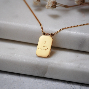 {"id":8022075146468,"title":"Necklace - MantraBand Note To Self \"I Am Enough\"","handle":"necklace-mantraband-note-to-self-i-am-enough-1","description":"\u003cstrong\u003eI Am Enough is a gentle reminder to accept and love yourself, always. forgive yourself, because your mistakes don’t define you. I am worthy, I am loved. I have enough, I do enough, I am enough.\u003cbr\u003e\u003cbr\u003e\u003c\/strong\u003eA simple, elegant message to remind you of what matters most. Keep these messages close to your heart as a personal reminder, affirmation, and inspiration. A love note for you, to you, from you.\u003cbr\u003e \u003cbr\u003e Size: Pendant: about 3\/8” width and 5\/8” height\u003cbr\u003e Chain: 15.5-17.5” or 40-45cm adjustable length\u003cbr\u003e Material: 18k gold-dipped stainless steel\u003cbr\u003e Quality: Our gold plating is 8 microns thick (higher than industry average of 2.5 microns).\u003cstrong\u003e\u003cbr\u003e\u003c\/strong\u003e","published_at":"2023-08-19T22:00:03-04:00","created_at":"2023-08-18T21:48:44-04:00","vendor":"MantraBand","type":"Necklace","tags":["Adjustable Length","I Am Enough","MantraBand","Necklace","Note to Self","Pendant"],"price":3600,"price_min":3600,"price_max":3800,"available":true,"price_varies":true,"compare_at_price":null,"compare_at_price_min":0,"compare_at_price_max":0,"compare_at_price_varies":false,"variants":[{"id":44107069227236,"title":"Gold","option1":"Gold","option2":null,"option3":null,"sku":"1159-IAE-NTS02","requires_shipping":true,"taxable":true,"featured_image":null,"available":true,"name":"Necklace - MantraBand Note To Self \"I Am Enough\" - Gold","public_title":"Gold","options":["Gold"],"price":3800,"weight":57,"compare_at_price":null,"inventory_quantity":4,"inventory_management":"shopify","inventory_policy":"deny","barcode":"794094225349","requires_selling_plan":false,"selling_plan_allocations":[]},{"id":45250003763428,"title":"Silver","option1":"Silver","option2":null,"option3":null,"sku":"1159-IAE-NTS01","requires_shipping":true,"taxable":true,"featured_image":{"id":67794858410212,"product_id":8022075146468,"position":7,"created_at":"2024-06-04T21:30:13-04:00","updated_at":"2024-06-04T21:30:13-04:00","alt":null,"width":477,"height":477,"src":"\/\/www.spottedmoon.com\/cdn\/shop\/files\/035d6ce3f120993e42c45ffe12802e55.jpg?v=1717551013","variant_ids":[45250003763428]},"available":true,"name":"Necklace - MantraBand Note To Self \"I Am Enough\" - Silver","public_title":"Silver","options":["Silver"],"price":3600,"weight":57,"compare_at_price":null,"inventory_quantity":4,"inventory_management":"shopify","inventory_policy":"deny","barcode":"794094227510","featured_media":{"alt":null,"id":60488122466532,"position":7,"preview_image":{"aspect_ratio":1.0,"height":477,"width":477,"src":"\/\/www.spottedmoon.com\/cdn\/shop\/files\/035d6ce3f120993e42c45ffe12802e55.jpg?v=1717551013"}},"requires_selling_plan":false,"selling_plan_allocations":[]}],"images":["\/\/www.spottedmoon.com\/cdn\/shop\/files\/d35b0548e3e9f440ec678d01e5bd96c2_51692f00-dbc4-470e-8b03-a778919817de.png?v=1692409726","\/\/www.spottedmoon.com\/cdn\/shop\/files\/8b07647151cb4eca71e91e6286e0e680_67b4b7da-3d45-4f49-bd34-69170e742f39.png?v=1692409727","\/\/www.spottedmoon.com\/cdn\/shop\/files\/93b163abdedc3a4aea6126e3ba6b34a5_194cb5b0-fc2b-454f-849c-7dc269b9b687.png?v=1692409728","\/\/www.spottedmoon.com\/cdn\/shop\/files\/b367e15b72e0be108529d40f36ddd68e_074df9cf-a8ef-42ec-aaf9-28c7cccc758b.png?v=1692409730","\/\/www.spottedmoon.com\/cdn\/shop\/files\/5e99f95aef7431e6f8891c3f8e488b0d_b951c2d0-b2a0-41d0-9296-3c1c920949e2.png?v=1692409731","\/\/www.spottedmoon.com\/cdn\/shop\/files\/47676d22a2b6d2e578478cd18e55607b_f1f512cf-c9f5-438e-90dd-ba8f9d3bcbab.png?v=1692409733","\/\/www.spottedmoon.com\/cdn\/shop\/files\/035d6ce3f120993e42c45ffe12802e55.jpg?v=1717551013"],"featured_image":"\/\/www.spottedmoon.com\/cdn\/shop\/files\/d35b0548e3e9f440ec678d01e5bd96c2_51692f00-dbc4-470e-8b03-a778919817de.png?v=1692409726","options":["Variant"],"media":[{"alt":null,"id":49702094831844,"position":1,"preview_image":{"aspect_ratio":0.7,"height":600,"width":420,"src":"\/\/www.spottedmoon.com\/cdn\/shop\/files\/d35b0548e3e9f440ec678d01e5bd96c2_51692f00-dbc4-470e-8b03-a778919817de.png?v=1692409726"},"aspect_ratio":0.7,"height":600,"media_type":"image","src":"\/\/www.spottedmoon.com\/cdn\/shop\/files\/d35b0548e3e9f440ec678d01e5bd96c2_51692f00-dbc4-470e-8b03-a778919817de.png?v=1692409726","width":420},{"alt":null,"id":49702099615972,"position":2,"preview_image":{"aspect_ratio":1.0,"height":875,"width":875,"src":"\/\/www.spottedmoon.com\/cdn\/shop\/files\/8b07647151cb4eca71e91e6286e0e680_67b4b7da-3d45-4f49-bd34-69170e742f39.png?v=1692409727"},"aspect_ratio":1.0,"height":875,"media_type":"image","src":"\/\/www.spottedmoon.com\/cdn\/shop\/files\/8b07647151cb4eca71e91e6286e0e680_67b4b7da-3d45-4f49-bd34-69170e742f39.png?v=1692409727","width":875},{"alt":null,"id":49702104301796,"position":3,"preview_image":{"aspect_ratio":1.0,"height":875,"width":875,"src":"\/\/www.spottedmoon.com\/cdn\/shop\/files\/93b163abdedc3a4aea6126e3ba6b34a5_194cb5b0-fc2b-454f-849c-7dc269b9b687.png?v=1692409728"},"aspect_ratio":1.0,"height":875,"media_type":"image","src":"\/\/www.spottedmoon.com\/cdn\/shop\/files\/93b163abdedc3a4aea6126e3ba6b34a5_194cb5b0-fc2b-454f-849c-7dc269b9b687.png?v=1692409728","width":875},{"alt":null,"id":49702107414756,"position":4,"preview_image":{"aspect_ratio":1.0,"height":875,"width":875,"src":"\/\/www.spottedmoon.com\/cdn\/shop\/files\/b367e15b72e0be108529d40f36ddd68e_074df9cf-a8ef-42ec-aaf9-28c7cccc758b.png?v=1692409730"},"aspect_ratio":1.0,"height":875,"media_type":"image","src":"\/\/www.spottedmoon.com\/cdn\/shop\/files\/b367e15b72e0be108529d40f36ddd68e_074df9cf-a8ef-42ec-aaf9-28c7cccc758b.png?v=1692409730","width":875},{"alt":null,"id":49702113050852,"position":5,"preview_image":{"aspect_ratio":1.0,"height":875,"width":875,"src":"\/\/www.spottedmoon.com\/cdn\/shop\/files\/5e99f95aef7431e6f
