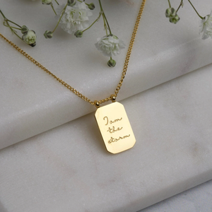 {"id":8022085370084,"title":"Necklace - MantraBand Note To Self \"I Am The Storm\"","handle":"necklace-mantraband-note-to-self-i-am-the-storm","description":"\u003cstrong\u003elet this serve as your reminder to believe in yourself, to know your strength and your power. Remember that you have the power to control your life, to manifest everything you have ever wanted. Cultivate your faith, find the courage to step forward, and dare to chase your wildest dreams. Believe that nothing can stop you, there is no one that can hold you back, because you are not simply stronger than the storm around you, you are the power that drives it forward. \u003cbr\u003e\u003cbr\u003e\u003c\/strong\u003eA simple, elegant message to remind you of what matters most. Keep these messages close to your heart as a personal reminder, affirmation, and inspiration. A love note for you, to you, from you.\u003cbr\u003e \u003cbr\u003e \u003cstrong\u003eSize:\u003c\/strong\u003e Pendant: about 3\/8” width and 5\/8” height\u003cbr\u003e \u003cstrong\u003eChain:\u003c\/strong\u003e 15.5-17.5” or 40-45cm adjustable length\u003cbr\u003e \u003cstrong\u003eMaterial:\u003c\/strong\u003e 18k gold-dipped stainless steel\u003cbr\u003e \u003cstrong\u003eQuality:\u003c\/strong\u003e Our gold plating is 8 microns thick (higher than industry average of 2.5 microns).","published_at":"2023-08-19T22:00:04-04:00","created_at":"2023-08-18T22:04:05-04:00","vendor":"MantraBand","type":"Necklace","tags":["Adjustable Length","I Am The Storm","MantraBand","Necklace","Note to Self","Pendant"],"price":3600,"price_min":3600,"price_max":3800,"available":true,"price_varies":true,"compare_at_price":null,"compare_at_price_min":0,"compare_at_price_max":0,"compare_at_price_varies":false,"variants":[{"id":44107123491044,"title":"Gold","option1":"Gold","option2":null,"option3":null,"sku":"1159-IAS-NTS02","requires_shipping":true,"taxable":true,"featured_image":{"id":64682908254436,"product_id":8022085370084,"position":8,"created_at":"2024-01-30T15:15:25-05:00","updated_at":"2024-01-30T15:15:25-05:00","alt":null,"width":875,"height":875,"src":"\/\/www.spottedmoon.com\/cdn\/shop\/files\/a33ac9495625b7908f24cfa1af7c955c_3d101945-60d5-46f2-b115-ea62c901e6f0.png?v=1706645725","variant_ids":[44107123491044]},"available":true,"name":"Necklace - MantraBand Note To Self \"I Am The Storm\" - Gold","public_title":"Gold","options":["Gold"],"price":3800,"weight":57,"compare_at_price":null,"inventory_quantity":5,"inventory_management":"shopify","inventory_policy":"deny","barcode":"794094225356","featured_media":{"alt":null,"id":57304163778788,"position":8,"preview_image":{"aspect_ratio":1.0,"height":875,"width":875,"src":"\/\/www.spottedmoon.com\/cdn\/shop\/files\/a33ac9495625b7908f24cfa1af7c955c_3d101945-60d5-46f2-b115-ea62c901e6f0.png?v=1706645725"}},"requires_selling_plan":false,"selling_plan_allocations":[]},{"id":44526117388516,"title":"Silver","option1":"Silver","option2":null,"option3":null,"sku":"1159-IAS-NTS01","requires_shipping":true,"taxable":true,"featured_image":{"id":64682908057828,"product_id":8022085370084,"position":7,"created_at":"2024-01-30T15:15:23-05:00","updated_at":"2024-01-30T15:15:23-05:00","alt":null,"width":977,"height":977,"src":"\/\/www.spottedmoon.com\/cdn\/shop\/files\/419f32ff86d762f989f1edd03711223b.jpg?v=1706645723","variant_ids":[44526117388516]},"available":true,"name":"Necklace - MantraBand Note To Self \"I Am The Storm\" - Silver","public_title":"Silver","options":["Silver"],"price":3600,"weight":57,"compare_at_price":null,"inventory_quantity":7,"inventory_management":"shopify","inventory_policy":"deny","barcode":"794094226773","featured_media":{"alt":null,"id":57304163582180,"position":7,"preview_image":{"aspect_ratio":1.0,"height":977,"width":977,"src":"\/\/www.spottedmoon.com\/cdn\/shop\/files\/419f32ff86d762f989f1edd03711223b.jpg?v=1706645723"}},"requires_selling_plan":false,"selling_plan_allocations":[]}],"images":["\/\/www.spottedmoon.com\/cdn\/shop\/files\/a33ac9495625b7908f24cfa1af7c955c.png?v=1692410647","\/\/www.spottedmoon.com\/cdn\/shop\/files\/53a1860ff3e562d6886cdaf83c3d914b.png?v=1692410648","\/\/www.spottedmoon.com\/cdn\/shop\/files\/0b1c04ac80fe8abe1b8939d653ec6640.png?v=1692410650","\/\/www.spottedmoon.com\/cdn\/shop\/files\/75b6c8e224579d76275cc9431406c689.png?v=1692410651","\/\/www.spottedmoon.com\/cdn\/shop\/files\/d1b1de22aa796d5c2636ff1f575eafa5.png?v=1692410652","\/\/www.spottedmoon.com\/cdn\/shop\/files\/dc8b021d18a4338b7488a066e5786625.png?v=1692410654","\/\/www.spottedmoon.com\/cdn\/shop\/files\/419f32ff86d762f989f1edd03711223b.jpg?v=1706645723","\/\/www.spottedmoon.com\/cdn\/shop\/files\/a33ac9495625b7908f24cfa1af7c955c_3d101945-60d5-46f2-b115-ea62c901e6f0.png?v=1706645725"],"featured_image":"\/\/www.spottedmoon.com\/cdn\/shop\/files\/a33ac9495625b7908f24cfa1af7c955c.png?v=1692410647","options":["Variant"],"media":[{"alt":null,"id":49702423199972,"position":1,"preview_image":{"aspect_ratio":1.0,"height":875,"width":875,"src":"\/\/www.spottedmoon.com\/cdn\/shop\/files\/a33ac9495625b7908f24cfa1af7c955c.png?v=1692410647"},"aspect_ratio":1.0,"height":875,"media_type":"image","src":"\/\/www.spottedmoon.com\/cdn\/shop\/files\/a33ac9495625b7908f24cfa1af7c955c.png?v=1692410647","width":875},{"alt":null,"id":49702423232740,"position":2,"preview_image":{"aspect_ratio":1.0,"height":875,"width":875,"src":"\/\/www.spottedmoon.com\/cdn\/shop\/files\/53a1860ff3e562d6886cdaf83c3d914b.png?v=1692410648"},"aspect_ratio":1.0,"height":875,"media_type":"image","src":"\/\/www.spottedmoon.com\/cdn\/shop\/files\/53a1860ff3e562d6886cdaf83c3d914b.png?v=1692410648","width":875},{"alt":null,"id":49702423265508,"position":3,"preview_image":{"aspect_ratio":1.0,"height":875,"width":875,"src":"\/\/www.spottedmoon.com\/cdn\/shop\/files\/0b1c04ac80fe8abe1b8939d653ec6640.png?v=1692410650"},"aspect_ratio":1.0,"height":875,"media_type":"image","src":"\/\/www.spottedmoon.com\/cdn\/shop\/files\/0b1c04ac80fe8abe1b8939d653ec6640.png?v=16