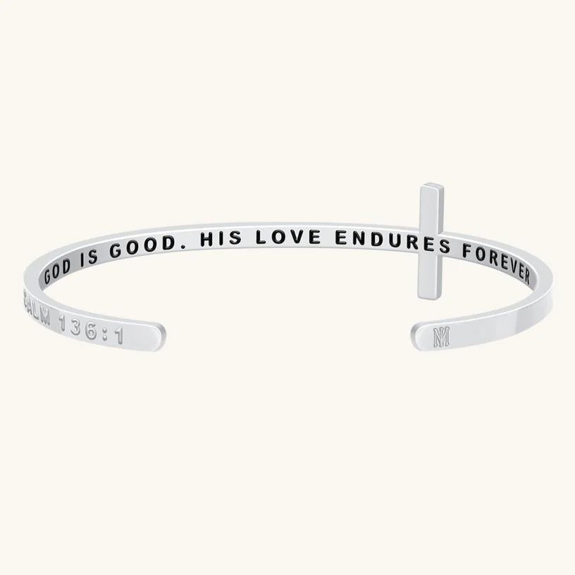 Cross Bracelet - God is Good, His Love Endures Forever (Psalm 136:1)