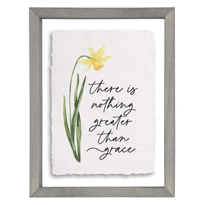Additional Info: theme - The theme of this image revolves around simplicity, elegance, and the inspiring message of grace. The combination of a soft and delicate yellow daffodil alongside the heartfelt text evokes a sense of tranquility and beauty. Ideal for enhancing the ambiance of any space with a touch of positivity and gentle charm. - inspiration, elegance, grace, tabletop decor, wall decor, simplicity, floral design, tranquility, positive message, home decor