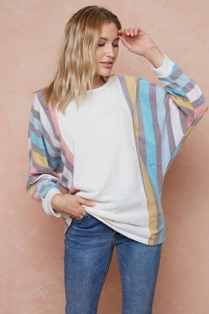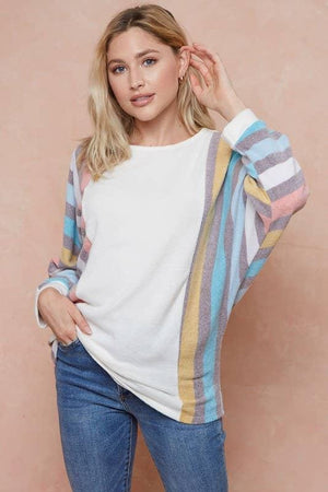 Plus Size Come To An End Multi Stripe Top - Ivory