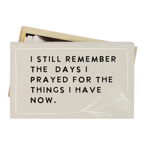 {"id":7928531353828,"title":"Prayer Box","handle":"prayer-box","description":"Our beautifully crafted artisan prayer boxes are made of solid wood. Boxes come with 50 blank cards, ready to be filled with your special prayers.\u003cbr\u003e\u003cbr\u003e Designed \u0026amp; Printed in the USA.\u003cbr\u003e\u003cbr\u003e Dimensions: 5\" x 3\" 2.5\"","published_at":"2023-04-28T22:08:03-04:00","created_at":"2023-01-29T18:40:09-05:00","vendor":"Sincere Surroundings","type":"Prayer Box","tags":["Faith","Made in USA","Prayer","Prayer Box","Sincere Surroundings","Solid Wood","Special Prayers"],"price":1440,"price_min":1440,"price_max":1440,"available":true,"price_varies":false,"compare_at_price":null,"compare_at_price_min":0,"compare_at_price_max":0,"compare_at_price_varies":false,"variants":[{"id":45616461086948,"title":"All Things Possible","option1":"All Things Possible","option2":null,"option3":null,"sku":"PB1011","requires_shipping":true,"taxable":true,"featured_image":{"id":70158386790628,"product_id":7928531353828,"position":10,"created_at":"2024-09-09T20:55:07-04:00","updated_at":"2025-07-26T20:22:19-04:00","alt":null,"width":857,"height":856,"src":"\/\/www.spottedmoon.com\/cdn\/shop\/files\/b3c2e7c395ad2f833b8d5052172b92ac.jpg?v=1753575739","variant_ids":[45616461086948]},"available":false,"name":"Prayer Box - All Things Possible","public_title":"All Things Possible","options":["All Things Possible"],"price":1440,"weight":170,"compare_at_price":null,"inventory_quantity":0,"inventory_management":"shopify","inventory_policy":"deny","barcode":"840136698050","featured_media":{"alt":null,"id":62151390658788,"position":10,"preview_image":{"aspect_ratio":1.001,"height":856,"width":857,"src":"\/\/www.spottedmoon.com\/cdn\/shop\/files\/b3c2e7c395ad2f833b8d5052172b92ac.jpg?v=1753575739"}},"requires_selling_plan":false,"selling_plan_allocations":[]},{"id":43772152938724,"title":"Casting All Your Care","option1":"Casting All Your Care","option2":null,"option3":null,"sku":"PB1015","requires_shipping":true,"taxable":true,"featured_image":{"id":45939284017380,"product_id":7928531353828,"position":25,"created_at":"2023-01-29T18:40:19-05:00","updated_at":"2025-07-26T20:22:19-04:00","alt":null,"width":730,"height":730,"src":"\/\/www.spottedmoon.com\/cdn\/shop\/products\/138887650d335956ac8b99a39fdf843b.png?v=1753575739","variant_ids":[43772152938724]},"available":false,"name":"Prayer Box - Casting All Your Care","public_title":"Casting All Your Care","options":["Casting All Your Care"],"price":1440,"weight":170,"compare_at_price":null,"inventory_quantity":0,"inventory_management":"shopify","inventory_policy":"deny","barcode":"840136698098","featured_media":{"alt":null,"id":38531957391588,"position":25,"preview_image":{"aspect_ratio":1.0,"height":730,"width":730,"src":"\/\/www.spottedmoon.com\/cdn\/shop\/products\/138887650d335956ac8b99a39fdf843b.png?v=1753575739"}},"requires_selling_plan":false,"selling_plan_allocations":[]},{"id":43772152971492,"title":"Don't Overthink","option1":"Don't Overthink","option2":null,"option3":null,"sku":"PB1010","requires_shipping":true,"taxable":true,"featured_image":{"id":45939284050148,"product_id":7928531353828,"position":24,"created_at":"2023-01-29T18:40:21-05:00","updated_at":"2025-07-26T20:22:19-04:00","alt":null,"width":730,"height":730,"src":"\/\/www.spottedmoon.com\/cdn\/shop\/products\/a25ae0f11dacc3deb5fa91789d78fba3.png?v=1753575739","variant_ids":[43772152971492]},"available":false,"name":"Prayer Box - Don't Overthink","public_title":"Don't Overthink","options":["Don't Overthink"],"price":1440,"weight":170,"compare_at_price":null,"inventory_quantity":0,"inventory_management":"shopify","inventory_policy":"deny","barcode":"840136698043","featured_media":{"alt":null,"id":38531957424356,"position":24,"preview_image":{"aspect_ratio":1.0,"height":730,"width":730,"src":"\/\/www.spottedmoon.com\/cdn\/shop\/products\/a25ae0f11dacc3deb5fa91789d78fba3.png?v=1753575739"}},"requires_selling_plan":false,"selling_plan_allocations":[]},{"id":43772153004260,"title":"Everything God's Hand","option1":"Everything God's Hand","option2":null,"option3":null,"sku":"PB1023","requires_shipping":true,"taxable":true,"featured_image":{"id":45939284508900,"product_id":7928531353828,"position":23,"created_at":"2023-01-29T18:40:23-05:00","updated_at":"2025-07-26T20:22:19-04:00","alt":null,"width":730,"height":730,"src":"\/\/www.spottedmoon.com\/cdn\/shop\/products\/7abc61ecf5875512d1183f6e5990b3a5.png?v=1753575739","variant_ids":[43772153004260]},"available":false,"name":"Prayer Box - Everything God's Hand","public_title":"Everything God's Hand","options":["Everything God's Hand"],"price":1440,"weight":170,"compare_at_price":null,"inventory_quantity":0,"inventory_management":"shopify","inventory_policy":"deny","barcode":"840136698173","featured_media":{"alt":null,"id":38531957883108,"position":23,"preview_image":{"aspect_ratio":1.0,"height":730,"width":730,"src":"\/\/www.spottedmoon.com\/cdn\/shop\/products\/7abc61ecf5875512d1183f6e5990b3a5.png?v=1753575739"}},"requires_selling_plan":false,"selling_plan_allocations":[]},{"id":43772153037028,"title":"Fear Thou Not","option1":"Fear Thou Not","option2":null,"option3":null,"sku":"PB1003","requires_shipping":true,"taxable":true,"featured_image":{"id":45939285360868,"product_id":7928531353828,"position":22,"created_at":"2023-01-29T18:40:25-05:00","updated_at":"2025-07-26T20:22:19-04:00","alt":null,"width":730,"height":730,"src":"\/\/www.spottedmoon.com\/cdn\/shop\/products\/d76dc038f4bc12244413da583db13150.png?v=1753575739","variant_ids":[43772153037028]},"available":false,"name":"Prayer Box - Fear Thou Not","public_title":"Fear Thou Not","options":["Fear Thou Not"],"price":1440,"weight":170,"compare_at_price":null,"inventory_quantity":0,"inventory_management":"shopify","inventory_policy":"deny","barcode":"840136697978","featured_media":{"alt":null,"id":38531958702308,"position":22,"preview_image":{"aspect_ratio":1.0,"height":730,"width":730,"src"